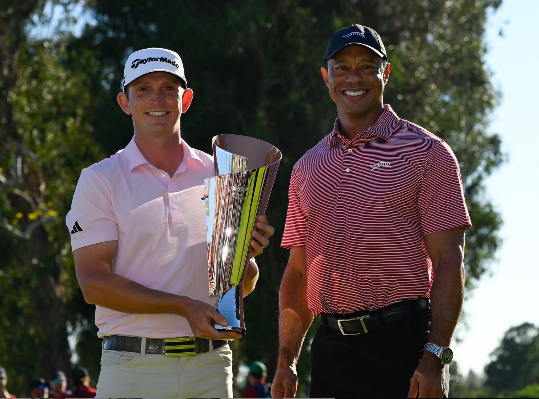 “[Tiger] was saying how amazing walking down and seeing the amphitheater and all the people, how amazing the 18th hole is here and how cool it is to win here,” Bridgeman said. “And he said, ‘You’ve got one on me.’”