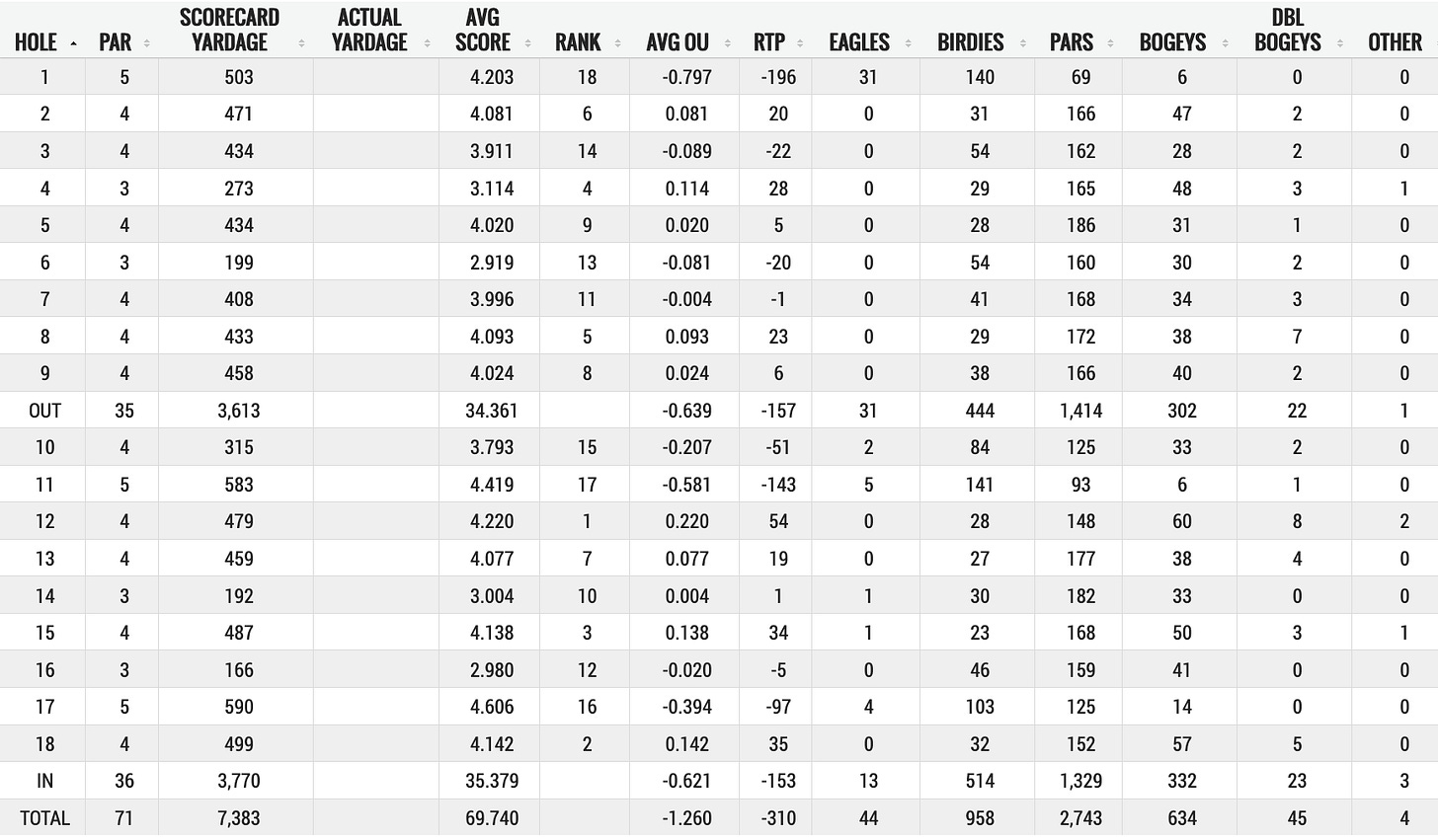 “It is impressive,” Scott said after signing for 63 on Sunday. “It was soft and I’m sure that could help a first timer. Just the trouble that you can get in on 10, we haven’t really seen disasters there this week, and the demand around the greens has just been softened slightly and we see that in the good scoring, but still, to manage your game around here?" The greens have been problematic I think for the whole field.”