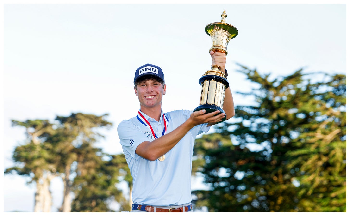 That he was even in match play was a miracle after bogeying the second hole in Wednesday’s 20 for 17 playoff just to have a shot at the Havemeyer Trophy and all that goes with it: a gold medal, Masters and U.S. Open invites, a Walker Cup spot at Cypress Point, and a place in golf history as the championship’s third-youngest winner, replacing Tiger Woods for that honor.