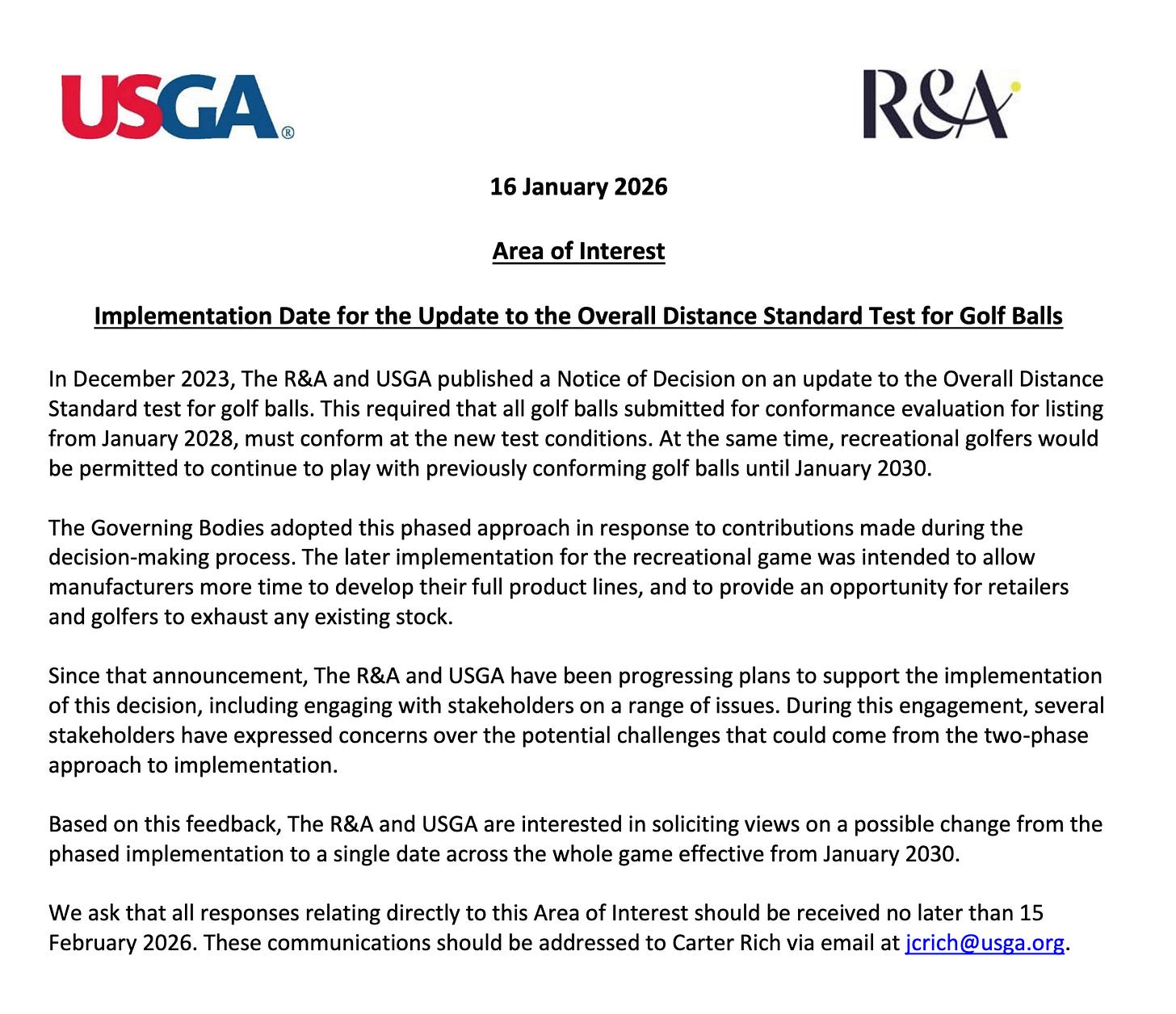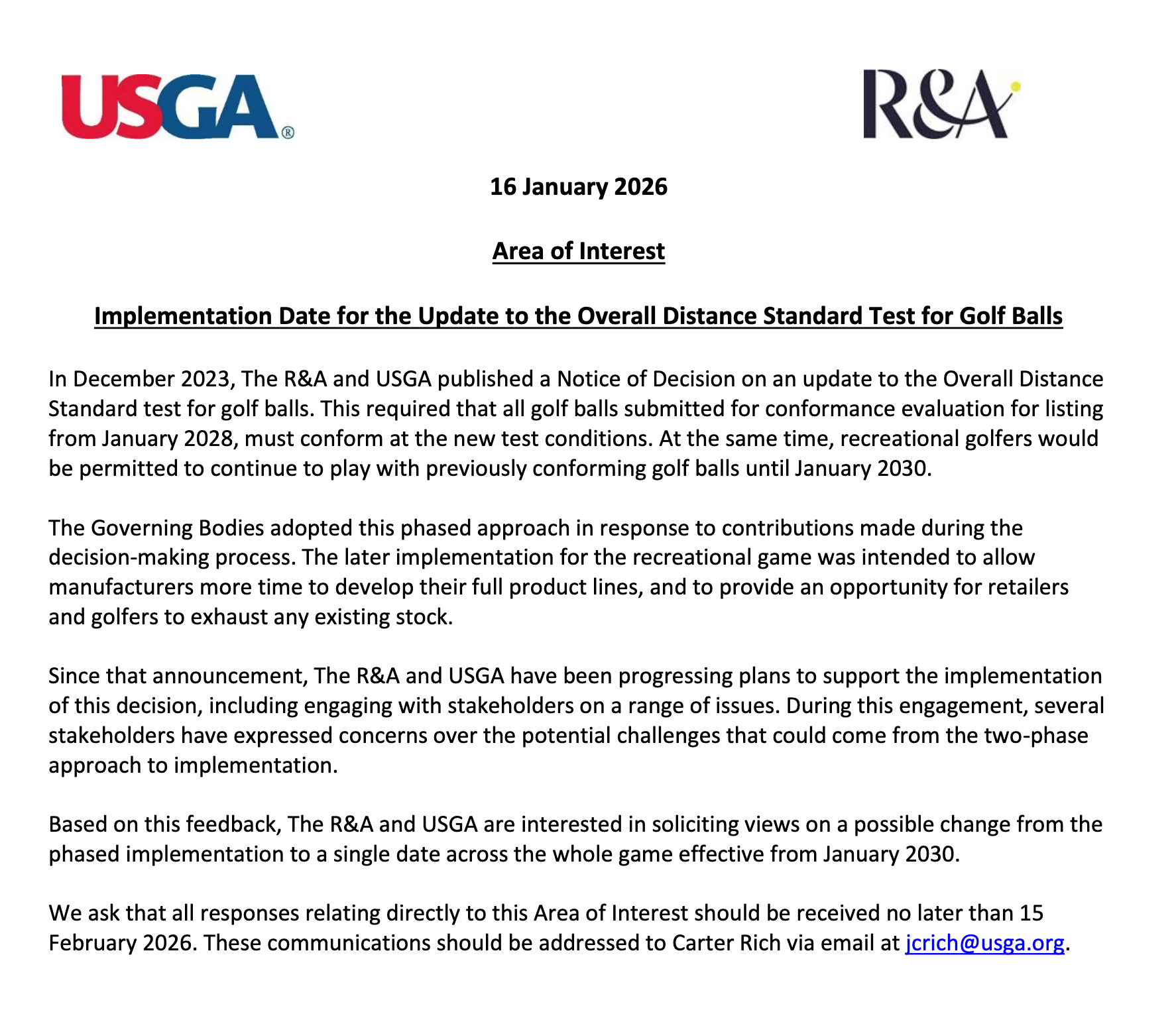 The Area of Interest notice also seems focused solely on the equipment makers and the needs of the PGA of America. But what about other interested parties?