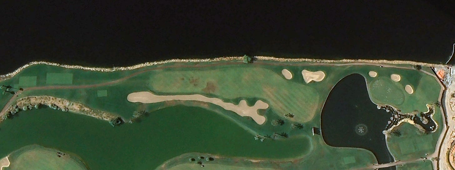 The 423-yard par 4 played to a 4.60 scoring average and 4.47 for the week. The hole produced 11 double bogeys or worse on Sunday and 33 for the week. Playing straight away along scenic Dubai Creek and lined down the right by a bacon strip bunker, the second shot plays over a lake to the small green surrounded by trouble.