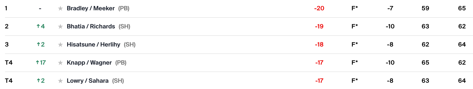 Mary Meeker became the first female winner of the AT&T Pebble Beach Pro-Am in its 80-year history. Partnering with Keegan Bradley, the duo posted a 20-under 124 total to win one over Akshay Bhatia and Reuben Richards. The team of Ryo Hitsasune and Ed Herlihy finished third at 18-under-par. A member of the PGA Tour’s non-profit board since 2017, Meeker and Bradley opened with a 59 on Thursday when Bradley shot 63 at Spyglass Hill. Meeker plays to a 13 out of San Francisco Golf Club. Adam Schupak filed a nice read on Meeker and her work with the Tour at Golfweek.com. Full amateur field scores can be viewed here.