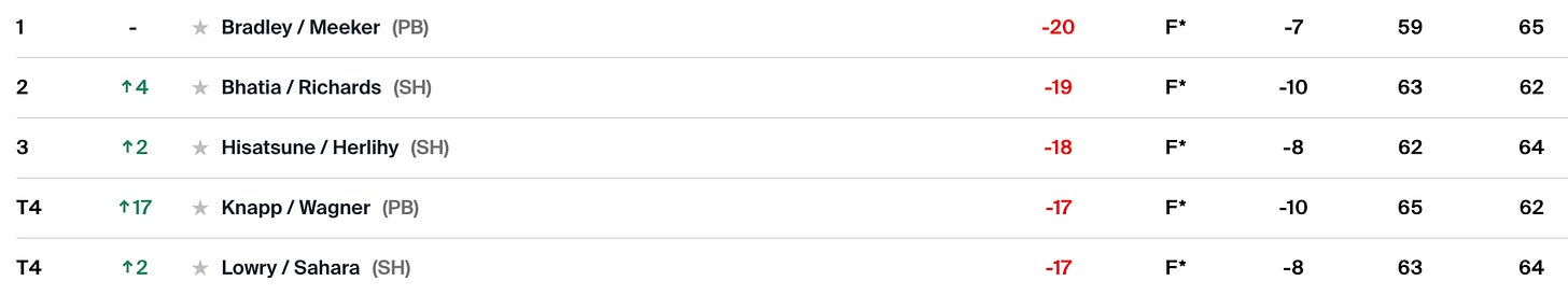 Maybe most impressive of all: Kim stared down LIV’s two best and most intimidating presences in today’s game with his Rahm and DeChambeau pairing, posting a 63 to Rahm’s 71 and DeChambeau’s 74.