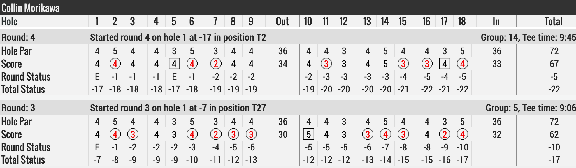 Morikawa has posted under-par scores in all 11 rounds at the event.