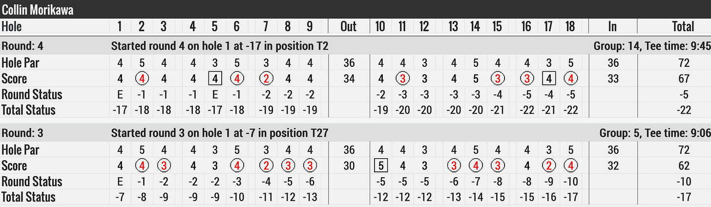 Some numbers from Collin Morikawa’s seventh career win at age 29:
